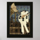 Poster of a vintage image of the sad clown Pierrot serenading the moon, which rests on a gilded pedestal, with his mandolin. A blue and purple argyle sky dotted with silver stars and the brown apartment building Pierrot stands in front of add a whimsical touch to this wonderful image. See matching wrapped canvas print. See the entire Tubular 80s Poster collection in the DECOR | Wall Art section.
