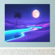 Moonlit Blue Oasis – Dreamy Desert Night Landscape Canvas Print