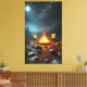 Be transported to a serene night with this realistic campfire scene under a starry sky, watched over by a soft moon in the background. The vivid flames cast a warm glow on two empty chairs, inviting you to sit down and enjoy the calm and warmth of the evening. The golden light dances on the rugged ground, creating a magical contrast between light and darkness. Perfect as a canvas print to bring a peaceful, natural, and cozy ambiance into your home.