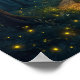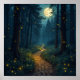 Moonlit Forest Path with Fireflies Poster
