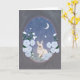 A sweet woodland bunny sits among moonlit flowers beneath a starry sky and crescent moon. This gentle nature-inspired illustration is perfect for sending a thoughtful note to animal lovers and nature enthusiasts.