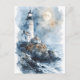 Moonlit Lighthouse on Rocky Coastline Postcard