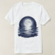 A large glowing full moon reflecting across calm ocean waves, silver light rippling across the water, illustrated in a minimal nightscape style with deep navy tones and soft white highlights.