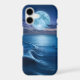 Beautiful phone case featuring an ocean scene that has light waves heading to the shoreline and a full moon to brighten the evening sky.