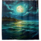 This captivating artwork features a serene nighttime seascape illuminated by a full moon. The moonlight casts a gentle glow on the ocean’s surface, creating a dramatic and tranquil atmosphere. The scene includes a beach with silhouetted trees on the left side and dark, rolling waves in the foreground. The moon, large and luminous, shines through scattered clouds, adding depth and mystery to the starry night sky. This piece beautifully captures the peacefulness of a moonlit night by the sea, making it a perfect addition to any collection.