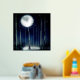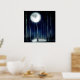 Stylish foil print with artwork of the moon lighting up a forest of birch trees enhanced with silver foil.