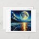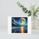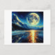 A massive moon illuminates a serene landscape with snow-capped mountains and a reflective lake, casting a warm glow across the scene. The vibrant sky is filled with swirling colors that blend beautifully with the icy tones of the water below.