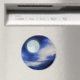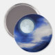 Moonscape print - mixed media graphic design, digitally enhanced photographic montage of the full moon, surrounded by a faint halo, against a deep blue night sky and moonlit clouds
