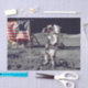 Eugene A. Cernan salutes flag on Moon, Lunar Module Challenger behind flag, Lunar Roving Vehicle brhind Cerman, Apollo 17, 1972.