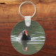 The moorhen is a medium-sized, ground-dwelling bird, that is usually found near water. From a distance it looks black with a ragged white line along its body. Up close it is olive-brown on the back and the head and underneath are blue-grey. It has a red bill with a yellow tip. It breeds in the UK in lowland areas, especially in central and eastern England. It is scarce in northern Scotland and the uplands of Wales and northern England. UK breeding birds are residents and seldom travel far. Moorhens tend to be solitary and feed around the water's edge. Though they appear placid, fighting is common and often prolonged, with each bird striking the other violently with the feet and even attempting to push or drag them underwater. Moorhens feed both on water and land and so have a varied diet of leaves, seeds, berries, worms, snails and fish, and also other birds' eggs.