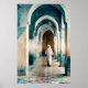 Beautiful Moorish architecture alley and an Arabic man in blue and khaki cream colour shades