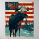 Moose American Flag Vintage Poster