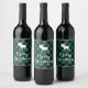Moose and Buffalo Green Plaid Pattern Christmas Wine Label