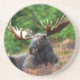 Moose Coaster. Magnificent photo of a majestic moose reclining in a field of wildflowers. Photo by Shivam Kumar.