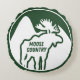 Welcome to Moose Country! This cute green and white throw pillow features a bull moose silhouette and mountains on a circle background. The perfect decor for your rustic getaway cabin lodge in the woods!