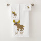 Bath towel set, consisting of a face cloth, hand towel and bath towel with a moose design. You can customise this bath towel set with any text of your choice. Should you require any help with customising then contact us through the message link on this page. Elk design bathroom towel set
