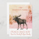 Moose en paysage hivernal enneigé Carte de vacances de Noël pour ceux qui aiment la nature et la faune. La teinte rose brillante en duotone crée un effet de lever du soleil matinal et rend cette carte pop. Pour ceux qui aiment la sérénité et la paix de la nature et de tous les êtres vivants.
