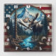 Moose in Mountain Landscape With American Flag Square Wall Clock