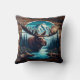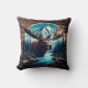 Moose in Mountain Landscape With River and Trees Throw Pillow