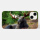Moose iPhone 14 Coque. Magnifique photo d'un orignal majestueux couché dans un champ de fleurs sauvages. Photo de Shivam Kumar.