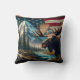 Moose Near River With Mountains and Flag Throw Pillow