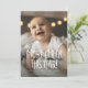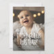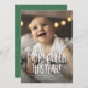 More cheer this year! Celebrate good news this holiday season with this two-photo Christmas birth announcement card. With one photo on the front and playful type, this vertical holiday card design also features room to introduce baby and share details like date and size. The back side is a festive green with playful dots and stars and also has a second photo and room for a longer message. It can also be left blank. This card works well as a holiday birth announcement, but the versatile text is also great for any happy occasion like a wedding, new pet or a Christmas pregnancy announcement. More colours and styles available and it can be purchased as a digital holiday card download.