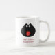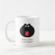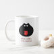 Mug with cute and funny print with cat and coffee and "more coffee, less worries" text. For coffee lovers gift.