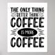 Coffee lovers will love this black text design on coffee themed T-shirts, mugs, bags, stickers and other items that reads The Only Thing Better Than Coffee is More Coffee!