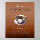 This delightful poster captures the essence of finding joy and energy in a simple cup of espresso. At its heart is a beautifully illustrated cup of espresso, resting gracefully on its saucer. The espresso is depicted with intricate detail, showcasing its deep, rich hue and the creamy layer of crema on its surface.