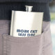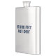 The product is a good size and came exactly as it was pictured.  The lid is not attached to the flask, which could be dangerous on drunken nights... The print came out surprisingly well and looks very sharp.  Would definitely recommend.