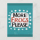 "More Frogs Please" is a fun text design with a white accent shape surrounded by white whimsical textured dots.