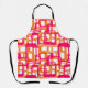 This apron has a mid-century modern design of open rectangles in pink over open rectangles in orange.