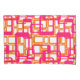 This pillowcase has a mid-century modern design of open rectangles in pink over open rectangles in orange.