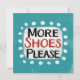 "More Shoes Please" is a fun text design with a white accent shape surrounded by white whimsical textured dots.