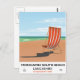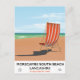 Morecambe South Beach Lancashire seaside poster ,vintage travel poster of a striped deck chair on a sandy beach.