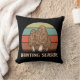 This pillow is reversible. One side says "Hunting Season" with an image of morel mushrooms and the other side says "I Will Find You" with an image of morel mushrooms.