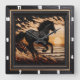 Experience the breathtaking beauty of a black horse galloping against the backdrop of a stunning sunset with our exquisite wall clock, a perfect blend of artistry and functionality. This unique timepiece captures the essence of freedom and grace, as the majestic Morgan horse races along a golden beach, its silhouette strikingly defined against the vibrant hues of the setting sun. The clock is elegantly framed by a ½-inch flat black wooden border, which is not only visually appealing but also features deep carvings that showcase a charred, textured grain. The rugged burn marks in shades of red, grey, and black create a captivating contrast with the lighter wood, enhancing the rustic charm of the piece.