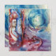 Colourful ,whimsical ,romantic, symbolist contemporary figurative watercolor painting for a spiritual,mystic legend figure in soft blue,pink ,red, purple,violet ,white colours by Alessandro Lumini 1988 . Cool and artistic design design easy to customize as a wedding ceremony, nuptial announcement card ,place cards ,save-the-date , thank you cards,bridal showers, sweet 16,quinceanera birthday parties,romantic engagement showers, christmas,office holiday party ,family reunions ,new year's day eve celebrations,St Patrick's day,carnival ,Fat Tuesday parties, anniversaries,gatherings,school graduations,concert,recital or just about any event you wish! .Morgan le Fay, alternatively known as Morgane, Morgaine, Morgana and other variants, is a powerful sorceress of Avalon in the Arthurian legend.Avalon (probably from the Welsh Celtic word afal, meaning apple; is a legendary island featured in the Arthurian legend, famous for its beautiful apples. It first appears in Geoffrey of Monmouth's 1136 pseudohistorical account "The History of the Kings of Britain" as the place where King Arthur's sword Caliburn (Excalibur) was forged and later where Arthur is taken to recover from his wounds after the Battle of Camlann. As an "Isle of the Blessed" Avalon has parallels elsewhere in Indo-European mythology, in particular the Irish Tír na nÓg and the Greek Hesperides, also noted for its apples. Avalon was associated from an early date with immortal beings such as Morgan le Fay.