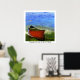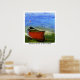A beautiful morning and the water lapping at a red canoe at the lake. From an original oil painting by Maria Williams. Find more information about the original painting at marglezartstudio.com © Maria Williams