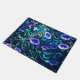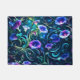 Vibrant blue and purple morning glory flowers intertwine with lush green leaves and swirling tendrils against a dark backdrop. The interplay of light and shadows gives the composition a luminous quality, emphasizing the intricate details and depth of the floral design.