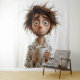 A whimsical and relatable illustration of a dishevelled man in a bathrobe clutching a cup of coffee with wide, tired eyes. His messy hair and bewildered expression perfectly capture the chaos of early mornings before caffeine takes effect.