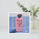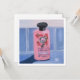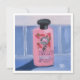 Art print of a pink shampoo bottle on blue tile.
