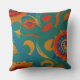Moroccan gold red orange teal blue leaf Mandela Throw Pillow