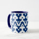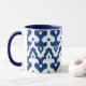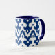 Moroccan inspired damask pattern of interlocking positive / negative fleur-de-lis shapes with a striated, Ikat woven texture - deep cobalt blue and white mug