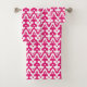 Moroccan Ikat Damask Pattern, Fuchsia Pink & White Bath Towel Set