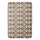 Bathmat in a Moroccan inspired damask pattern of interlocking positive / negative fleur-de-lis shapes with a striated, Ikat woven texture - deep taupe tan and light beige