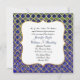 Jewel tones highlight this exotic looking wedding invitation done in a blue and green marbled tile look, with a gold tone quatrefoil pattern. Graphics of a gold framed decorative white text area, has custom text ready to personalize for your special day. Matching products are available.