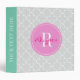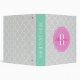 Moroccan quatrefoil pattern recipe binder book. Coral pink mint green and grey chevron pattern 3 ring binder. Trendy trellis lattice design with chic monogram name initial letter. Personalizable background colour and text. Stylish typography. Classy kitchen cook book for women. Also nice as wedding photo album, coupon holder etc. Custom school and office supplies for home and work.
