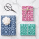Moroccan Tile, Blue, Fuchsia Pink, Turquoise Wrapping Paper Sheet