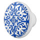 Moroccan inspired tile pattern knob with a polished, ceramic look - cobalt blue with a white background